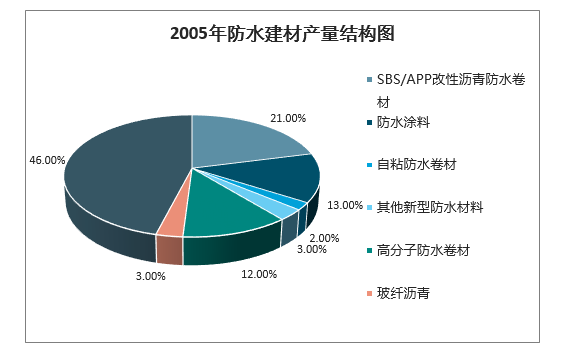2005年防水建材產(chǎn)量結(jié)構(gòu)圖