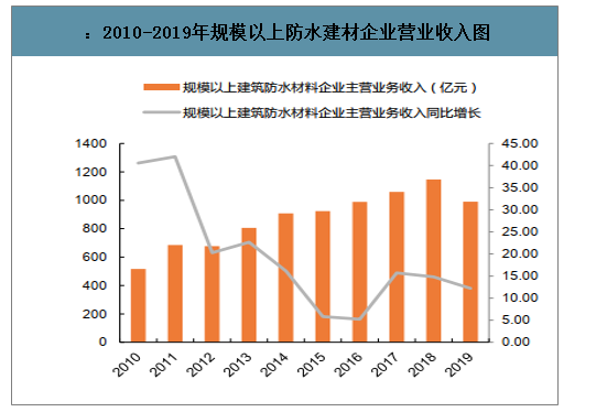 2010-2019年規(guī)模以上防水建材企業(yè)營業(yè)收入圖
