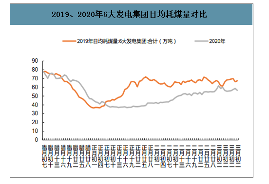 2019、2020年6大發(fā)電集團日均耗煤量對比