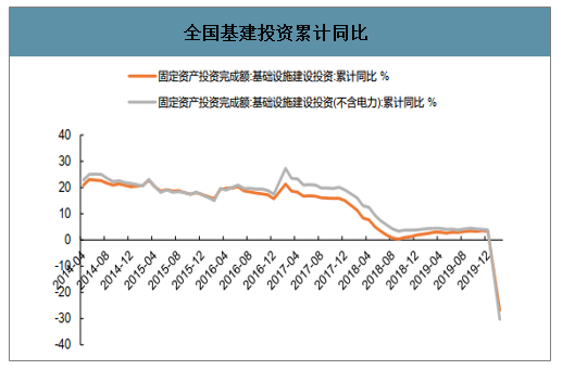 不完全統(tǒng)計,2020年各省重大項目計劃完成投資額6.29億元,同比增長4.7%,對基建投資形成支撐。各省重大投資項目主要包括“鐵公機”、“電氣水”等傳統(tǒng)基建、重大產(chǎn)業(yè)項目、生態(tài)環(huán)保項目等。2018年、2019年、2020年前兩個月,全國基建投資累計同增速分別為1.8%、3.3%、-26.9%;各省重大項目開展將對基建投資形成支撐。