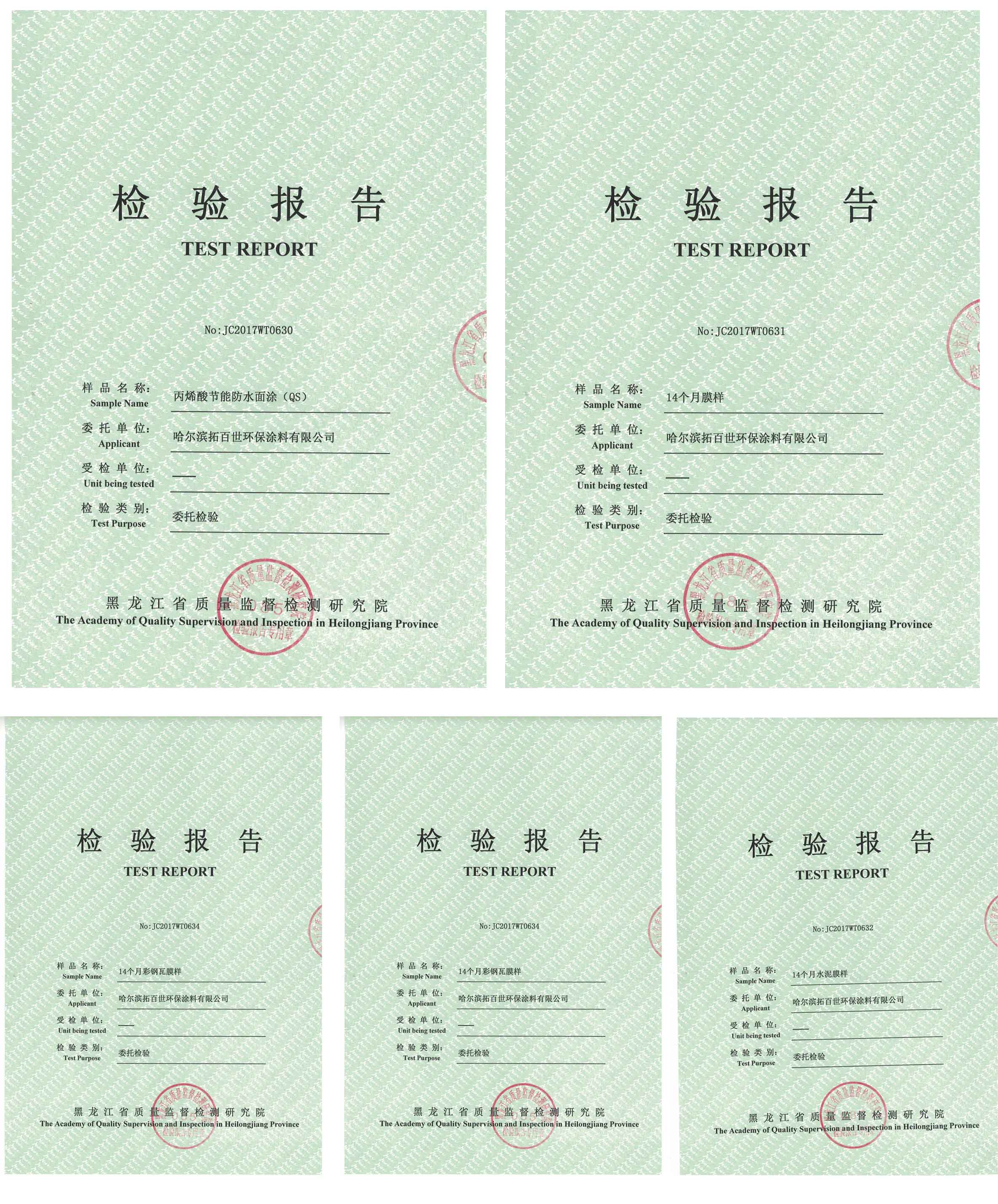 哈爾濱拓百世環保涂料有限公司首創的“冷屋面”節能隔熱防水全系列產品,經過時間的洗禮,一直在穩步發展中。拓百世針對嚴寒地帶并超過14個月的工程進行破壞性取樣,在黑龍江省質量技術監督檢測研究院的嚴格把控下,根據涂料行業的權威性國家標準做了全項檢測,各項指標合格并超出國家標準。